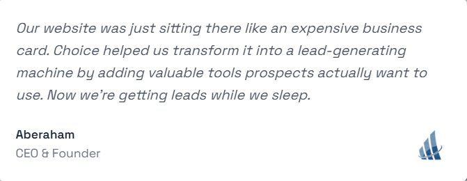 Our website was just sitting there like an expensive business card. Choice helped us transform it into a lead-generating machine by adding valuable tools…